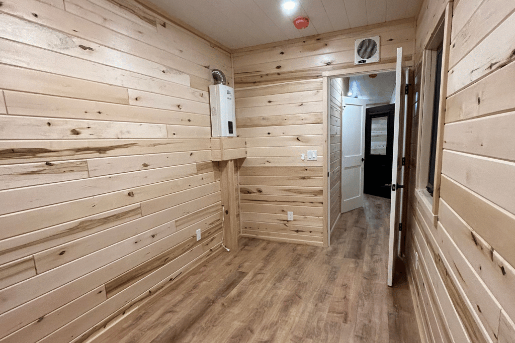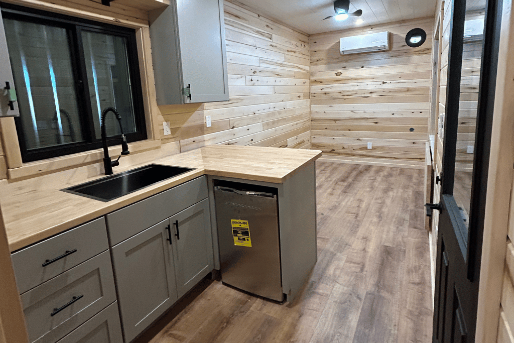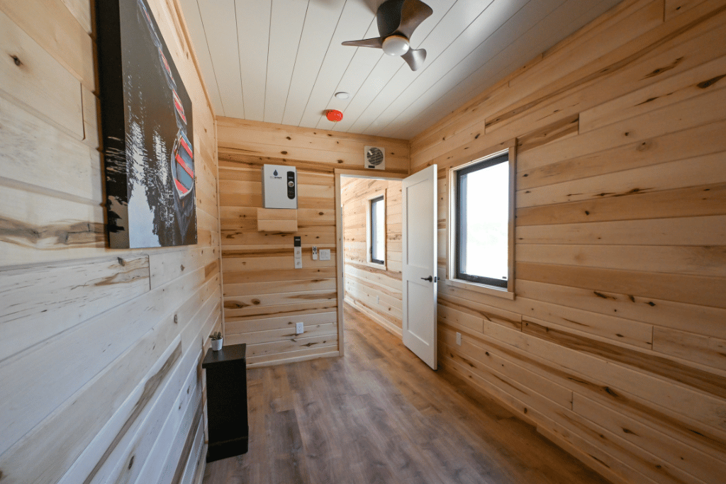 Inside, you’ll find a kitchen, bathroom, and a flexible living/sleeping space that adapts to whatever you need: a hunting retreat, weekend hideaway, or a self-sufficient off-grid cabin.